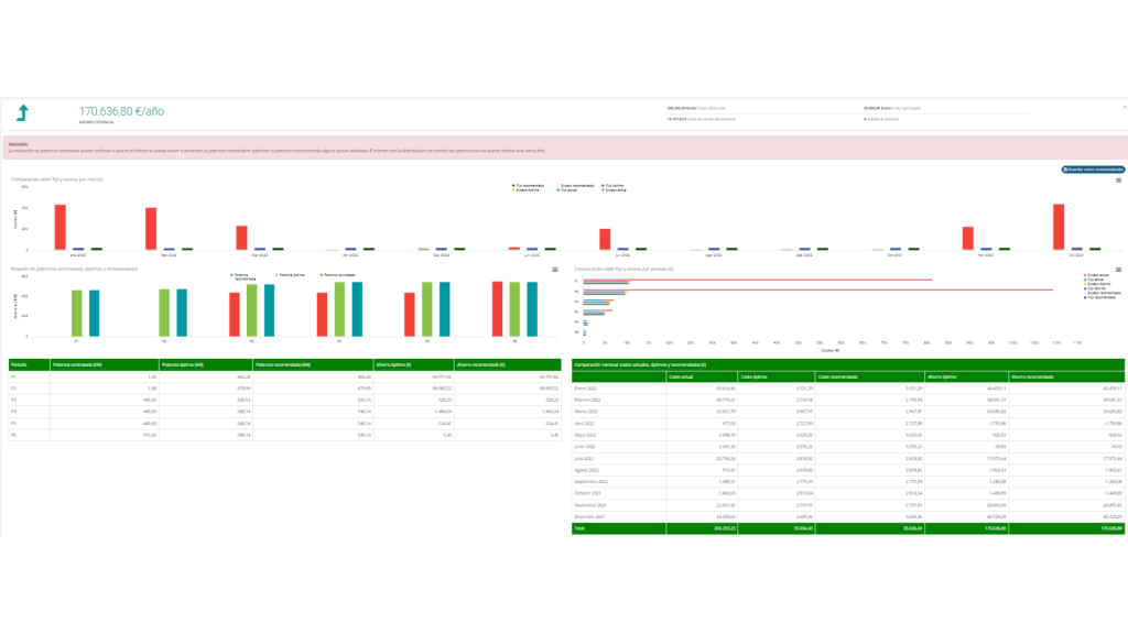 EnergySequence genera para cada recomendación de ajuste de potencia un conjunto de analíticas que hacen comprensibles los valores recomendados, facilitando una toma de decisión para su contratación.