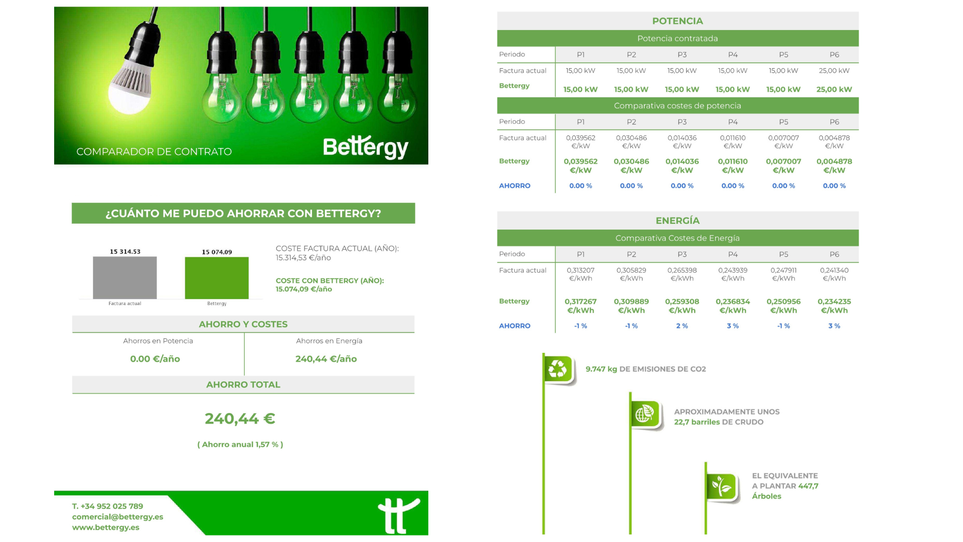 Se genera un informe con el ahorro por cambio de comercializadora introduciendo el CUPS de la instalación, con lo que se obtienen los principales datos del contrato actual, y se podrá agregar los precios de su contrato actual.